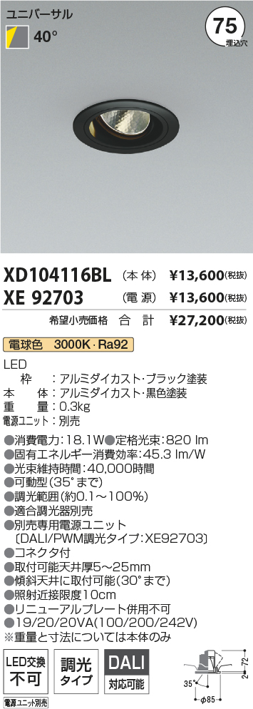 [XD104116BL] コイズミ照明,ダウンライト|コイズミ照明