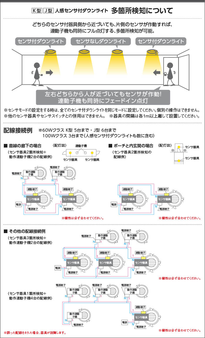 ●動作連動:K型センサ動作連動器具とLED5.5W調光タイプのダウンを含み5台まで
