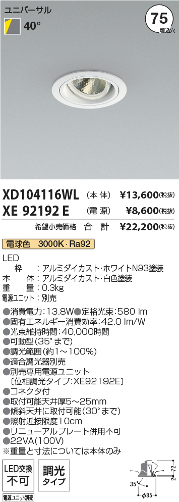 [XD104116WL] コイズミ照明,ダウンライト|コイズミ照明