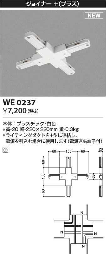 ●ライティングダクトを+型に連結し、電源を引込む場合に使用します(電源速結端子付)