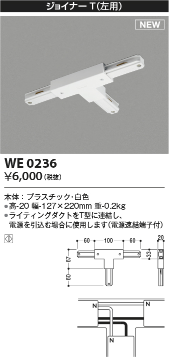 ●ライティングダクトをT型に連結し、電源を引込む場合に使用します(電源速結端子付)