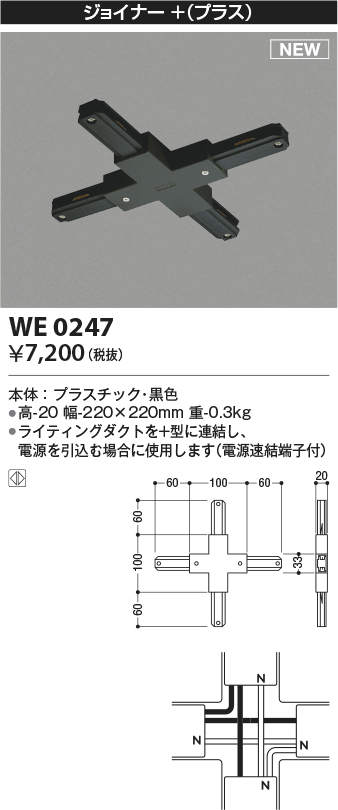 ●ライティングダクトを+型に連結し、電源を引込む場合に使用します(電源速結端子付)