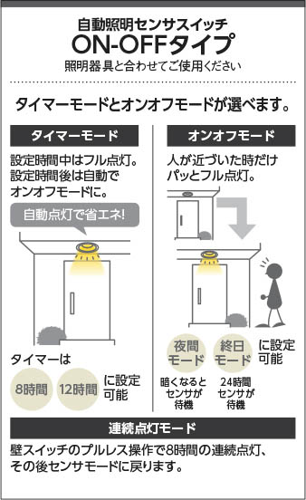 ●点灯照度スイッチ「切」で昼間でも動作確認が行えます